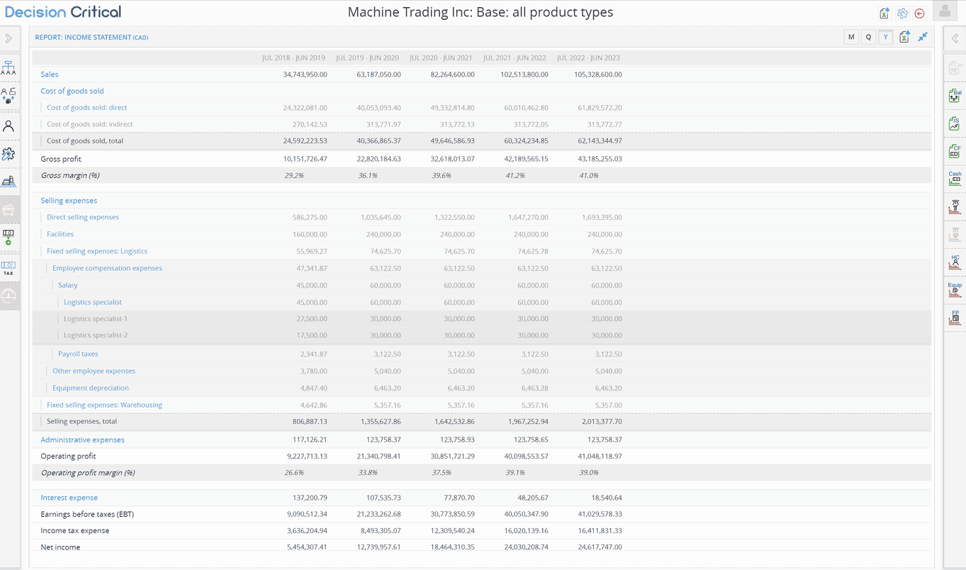 See up to six levels of granularity for the most complex causal chains, but never more than you need. Nested accounts fully export into spreadsheet form.